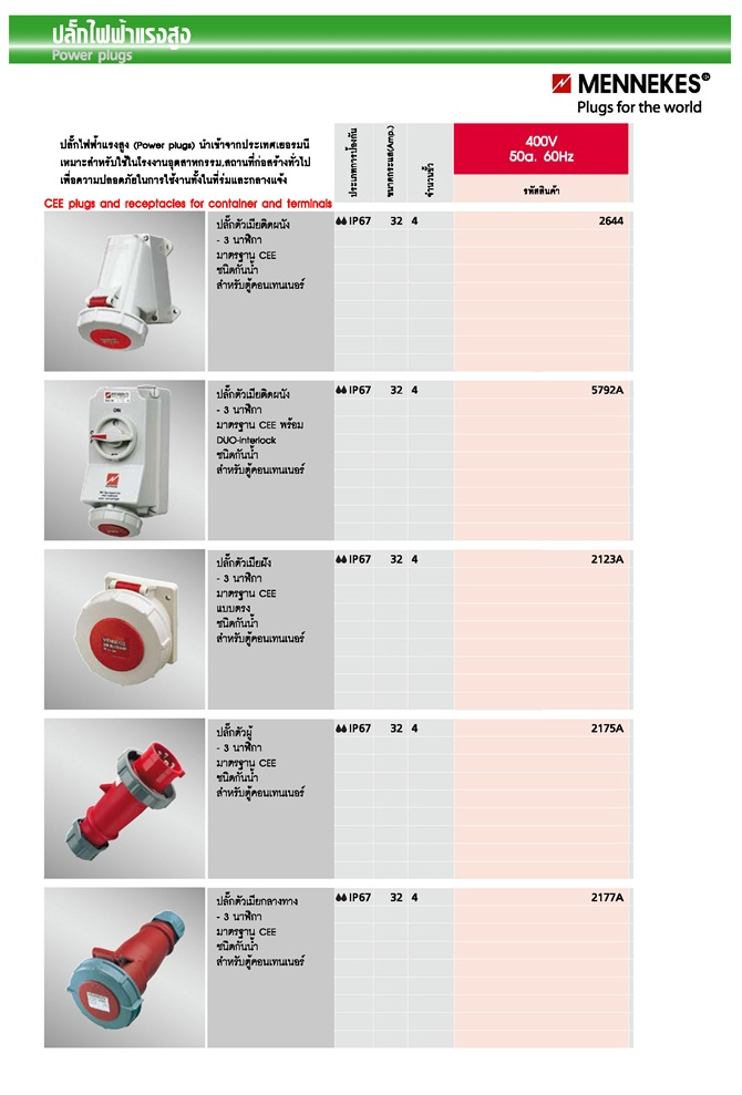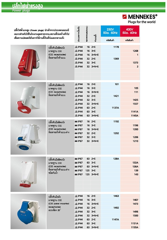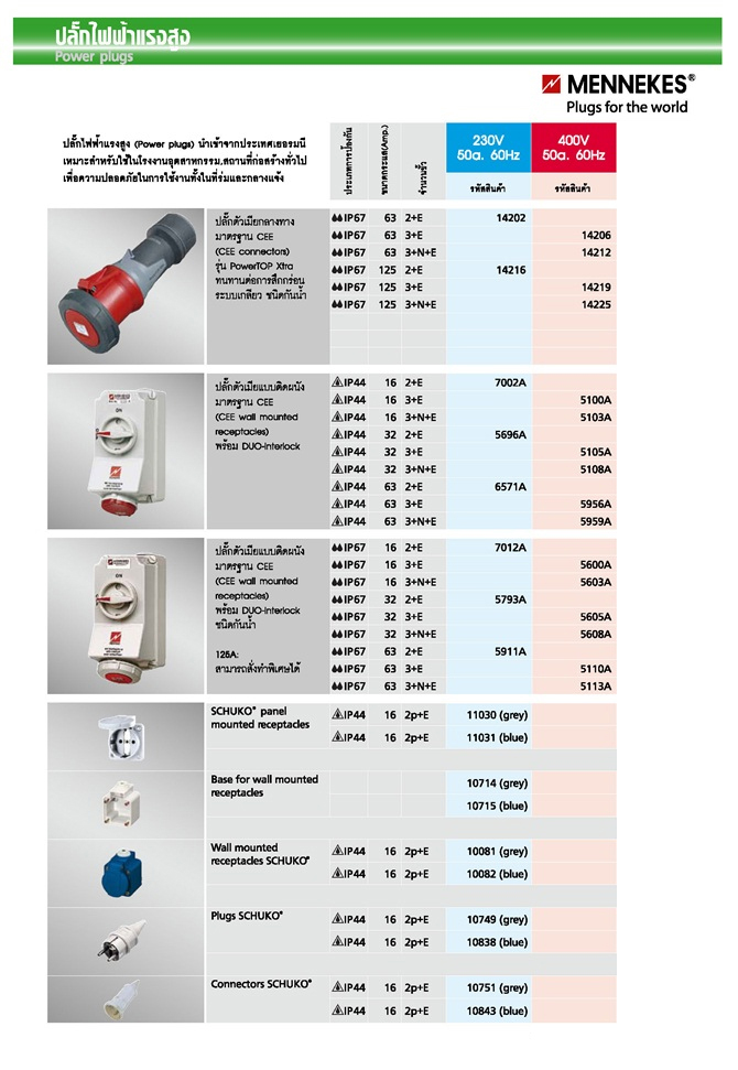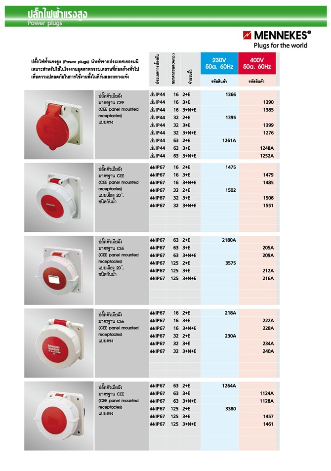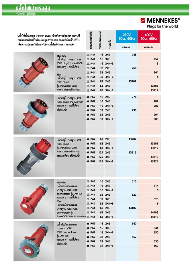 ปลั๊กไฟฟ้าแรงสูง (Power Plug) "MENNEKES" Form เยอรมนี ลูกค้าเลือกดู รุ่นที่ต้องการด้านล่างได้เลยค่ะ